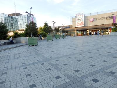 С балкона в отеле мы могли наблюдать днем и ночью городскую жизнь площади Альберта I перед торговым центром Place d'Arc.