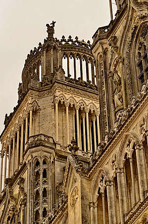 Собор Сен-Круа очень величественный, и улица к нему – прекрасное дополнение и оформление. Начинали его строить еще в 6 веке, но эти древности до наших дней не сохранились. После его много раз перестраивали, разрушали и восстанавливали, в начале 19 века он обрёл свой нынешний облик и, конечно, был посвящён Жанне д’Арк.