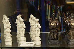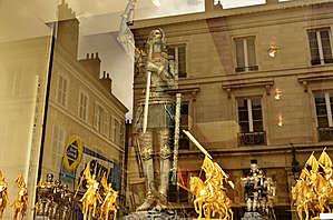 Конечно самое классное попасть на ежегодный праздник Орлеанской Девы. Проходит, как правило, 8 мая. Разыгрываются театральные представления, по центру города шествуют актеры и все желающие в одеждах придворных дам и кавалеров, латах рыцарей, рясах монахов и камзолах королевских чиновников. Возглавляет шествие юная девушка, исполняющая роль Жанны. Ее выбирают из жительниц Орлеана, она получает символический меч из рук своей предшественницы еще в апреле и четыре месяца «входит в образ»: изучает жизнь прототипа, обучается верховой езде и владению мечом. Ну и конечно, она должна быть хороша собой, ведь Жанна, при всей ее воинственности, была девушкой миловидной и обаятельной. Главный собор служит экраном грандиозного свето-музыкального шоу (проводится с наступлением темноты). Мы увидели вот такой стенд. Здесь фотографии разных лет.