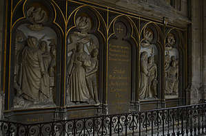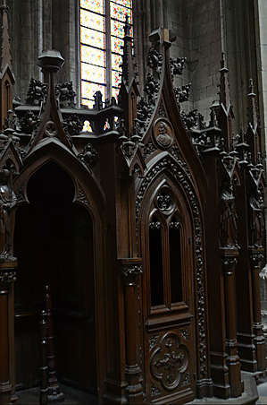 Все же люди, как люди. А я всегда хожу не в ту сторону. И в этот раз я себе не изменила. Поэтому мы нашли вполне достойную внимания старую церковь Leglise St Paterne, про которую нигде-нигде я в интернете ничего не нашла. При том, что от вокзала она совсем рядом, её почему-то не удостоили права быть включенной в перечень достопримечательностей города. Правда здесь есть преимущество. Служитель этой церкви на редкость приятный человек, подошел к нам и рассказывал (правда мы ж ничего не поняли) и показывал. Я только в такие моменты жалею, что не владею иностранными языками. Он с такой любовью к церкви и с симпатией к нам все это говорил… И я молодец сфотографировала две таблички с именами и датами.