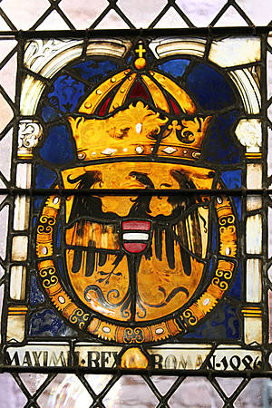 Следующая комната, украшенная гербами и нарисованной на потолке орлице-могильнике, говорит нам, что эта комната использовалась для проведения торжеств.