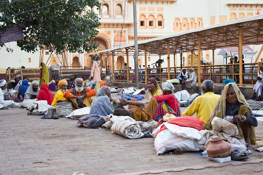 Возле храма сидят толпы паломников, которые ждут вечернего открытия нового действующего индуистского храма. Я тоже зашел внутрь и увидел, что все люди стоят в огромной очереди к человеку с белыми волосами, который брызгает на каждого водичкой. А в центре храма многие женщины просто лежат на полу и читают мантры. Внутри нельзя было фотографировать, но поверьте, увидеть это стоило.