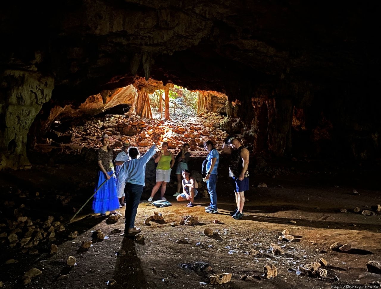 Не станем его посещать и мы, у нас на этот раз несколько иная цель. В нескольких километрах от бывшего города находится Священная пещера, в которой проводили свои ритуалы шаманы майя. Туда и направляемся мы в сопровождении двух, взятых в авто мексиканцев.