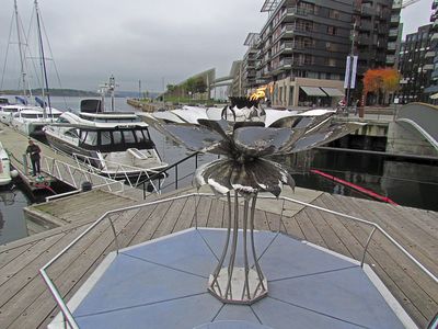 Надо отметить, что здесь видно, что в конце 20 века мода на "обнаженку" в скульптуре Осло миновала, и сюжеты стали более приближенными к реалиям))) Кстати, скульптуры здесь можно обнаружить не только на улицах, но и заглянув в воду залива...