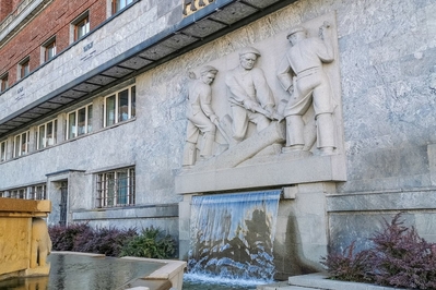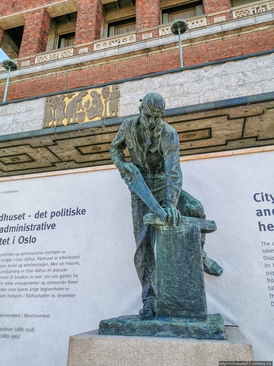 Фигуры, созданные в 1950–60 годах, изображают рабочих, которые строили Ратушу Осло. Это подсобный рабочий, электрик, каменотес, каменщик, плотник и камнелом. В виде плотника, как говорят, изображен любимый ученик Сторма. Счастье в труде! Это отчасти верно.