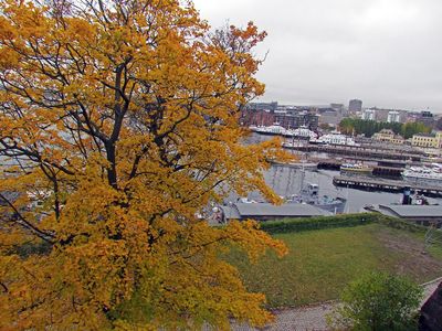 • 10. В крепость стоит прийти хотя бы ради этих видов на гавань. Поблизости нет других мест, откуда она так хорошо видна с высокой точки, а не поблизости их нет тем более, разве что у вас есть доступ на верхние этажи высоких домов на берегу гавани или на подъёмные краны, то тут, то там торчащие в окрестностях. На той стороне гавани находится набережная Aker Brygge.