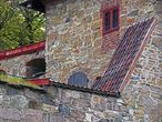 От башни нужно пройти через две арки по дороге вымощенной камнями, причём выложены они уступами, чтобы не скользили копыта у лошадей. Всё продумано!