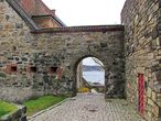 На внутреннюю территорию крепости войдём со стороны улицы Kongens gate, когда-то здесь проходил ров, по Крепостному мосту к Главным воротам.