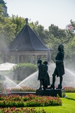 Недалеко от входа в крепость находится необычный памятник. Официально он именуется Национальным монументом и создан в память о жертвах Второй мировой войны норвежским скульптором. Большая женская фигура и маленькая мужская, но, тем не менее, мужчина выше. Это ещё раз говорит об особом отношении к женщине в Норвегии. Мужчины сражались с оккупантами, но именно женщины хранили домашний очаг, обеспечивали тыл для своих мужей, сыновей, отцов. Есть и другая трактовка — женщина, это "Родина — мать", а мужчина олицетворяет подрастающее поколение.