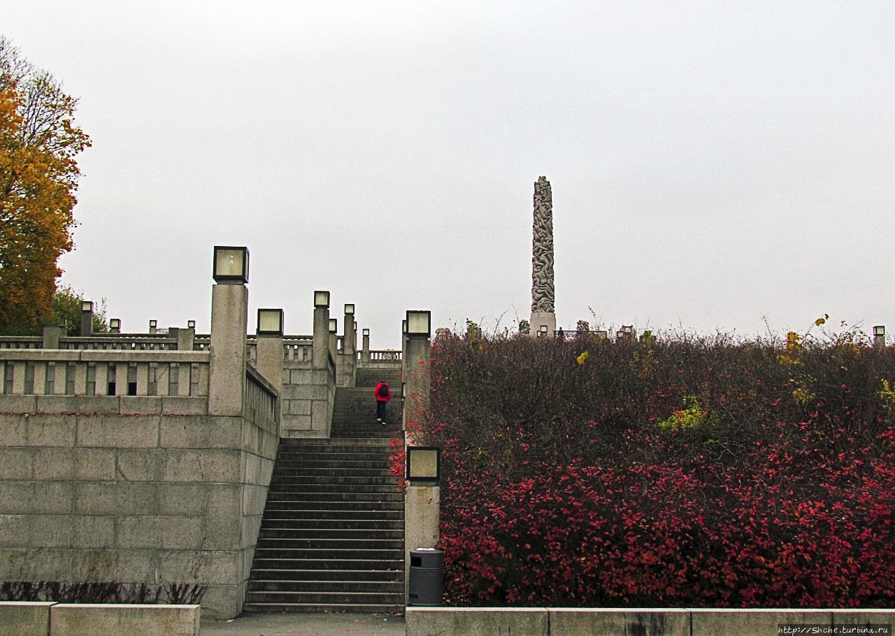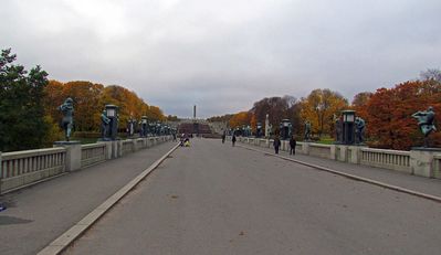 • 47. Вид группы Монолита от Колеса жизни. Парк Вигеланна по оси, заданной мостом, пройден от начала до конца.