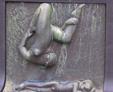 • 46. Ну да, опять круговорот, сплетение человеческих тел, которое можно интерпретировать как нескончаемое движение от рождения до смерти, нового рождения и новой смерти... После всего увиденного эта композиция не особо впечатляет, но очень правильно, что она есть. Нельзя ставить точку на такой высокой ноте, которую взяла группа Монолита, нужно немного приглушить её пафос. Кстати, для сведения: позади этого Колеса есть ещё один вход в парк. Может быть, он кому-то пригодится.