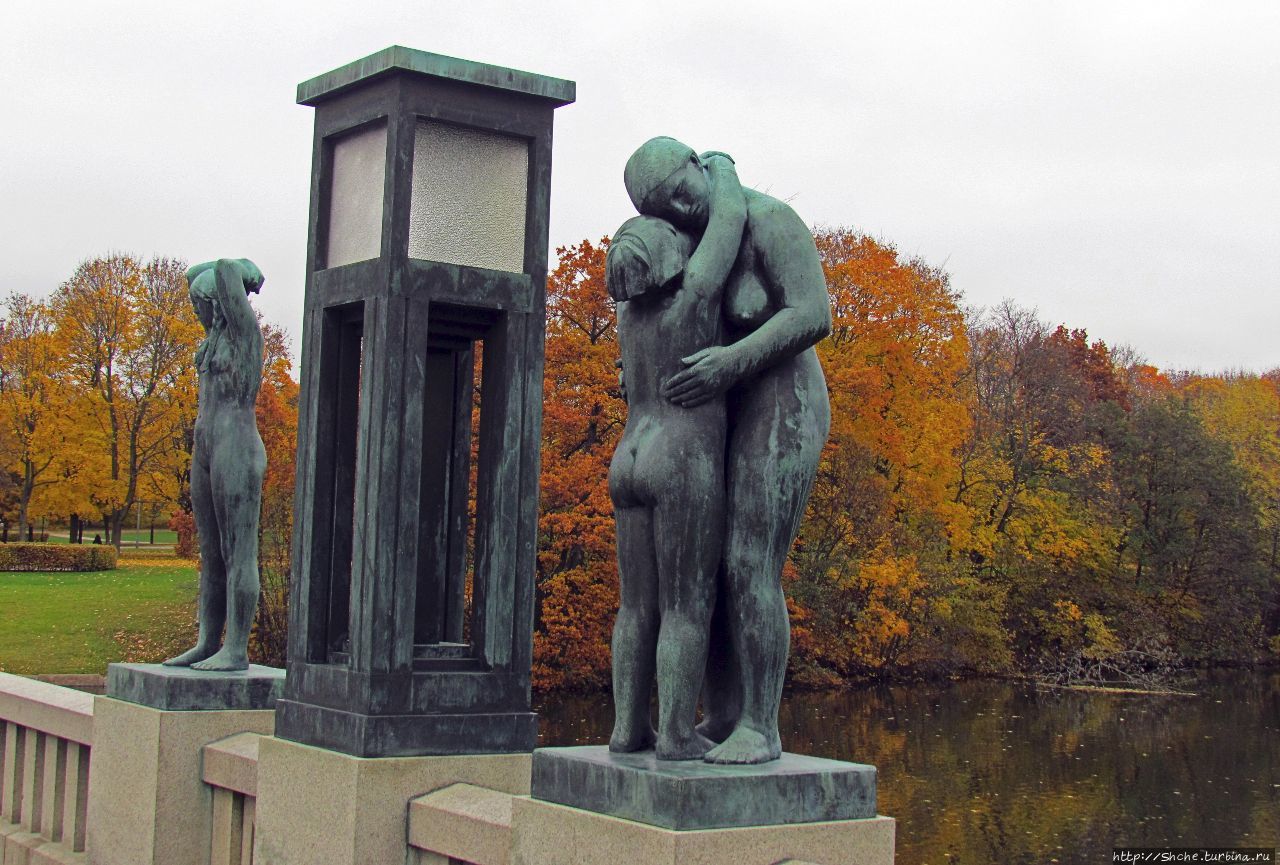 Все по-идее начинается с центральных ворот, но, как это частенько случается со мной, мы зашли в парк через юго-западные ворота, так что начнем осмотр шедевров Вигеланда с моста...