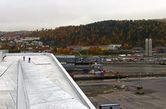 Наибольший восторг во внешнем оформлении здания вызывает белоснежная покатая крыша из натурального камня, которая поднимается от самого Осло-фьорда. По крыше можно беспрепятственно гулять, поскольку подъём на неё начинается непосредственно от набережной.