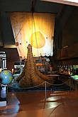 В соседнем зале, который будет для Вас первым находится еще один экспонат — папирусная лодка Ра-2, построенная в 1970 г. с учетом предыдущего опыта мастерами Боливии и Марокко. На ней экспедиция Хейердала пересекла Атлантический океан и достигла острова Барбадос, доказав тем самым возможность путешествий древних египтян в Америку. В этой экспедиции принимал участие и наш соотечественник, Юрий Сенкевич. Его фотографию можно увидеть в окружении спутников, а с другой стороны лодки есть и их скульптурная группа.