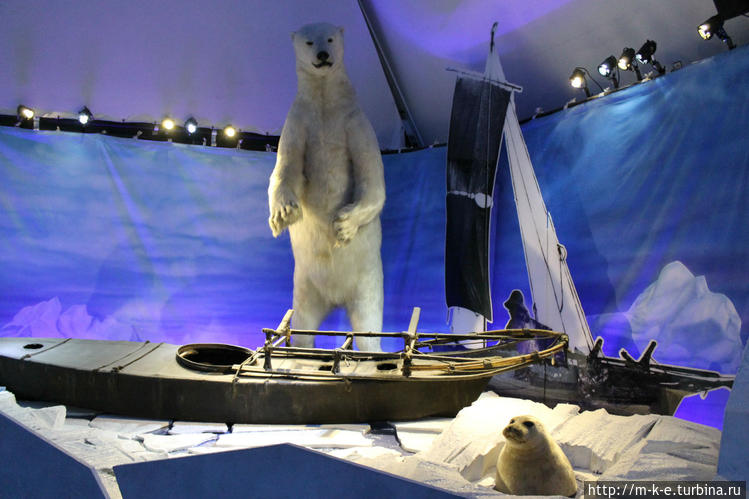 Экспозиция построена таким образом, что от днища корабля можно постепенно подняться по лестницам и попасть на борт корабля. Со стороны носа корабля, у стены можно на себе ощутить температурный режим полюса и пройти по макету ледяной пещеры. Вдоль корабля присутствует множества макетов с поясняющими надписями на разных языках, в том числе и на русском.