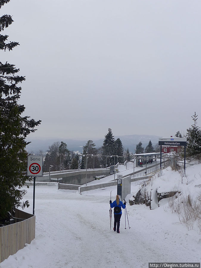 Трамплин Holmenkollen несомненно то место, которое надо посетить зимой, хотя бы ради того, что бы запечатлеть прекрасные виды на город и его окрестности. Добраться туда не представляет никаких сложностей: садитесь на первую линию метро в сторону конечной станции Frognerseteren и едете до одноименной станции. Поездка займет примерно пол-часа, если ехать от центра, но не будет слишком утомительной: во-первых вагоны метро достаточно комфортабельные, а во-вторых практически весь путь вы будете проезжать на поверхности, постепенно поднимаясь выше и выше, имея возможность посмотреть на окружающие пейзажи из окна.
