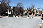 А напротив парламента стоит здание национального театра,открытого в 1899 году. Перед зданием театра ближе к фонтану стоит памятник актеру Пер Аабелю — ведущему актеру в роли короля Людовика. Кроме этого рядом еще несколько памятников людям искусства.