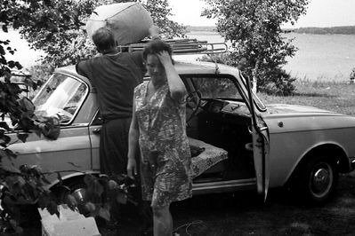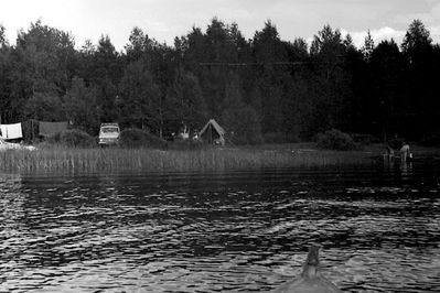 Поезд Москва-Осташков идет 12 часов — одну ночь, и прибывает на место ранним утром. Купить билеты на него было в те времена непросто. Нам удалось взять только боковые плацкартные места. До деревушки Осцы на берегу Селижаровского плеса, где был запланирован наш лагерь, мы добирались на попутке из Осташкова. Мои родители были уже на месте и разбили свой лагерь. Нам же они передали доставленные на машине наши вещи.