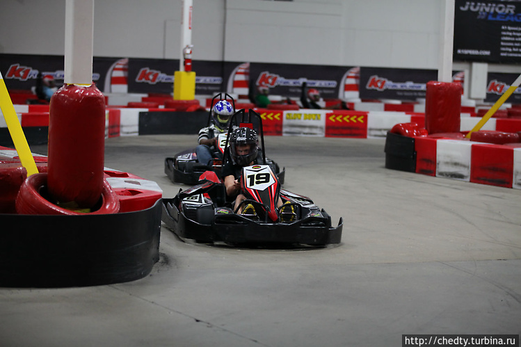 Картодром в Остине крытый, карты электрические, скорость достаточно приличная. Правда, в заявленые сто километров в час я не верю, разве, что спустить с горы Арарат. Димке, каким то образом, когда он был на картодроме с братьями, удалось наврать, что ему шестнадцать лет и он катается со взрослыми, у остальных детей свои заезды.