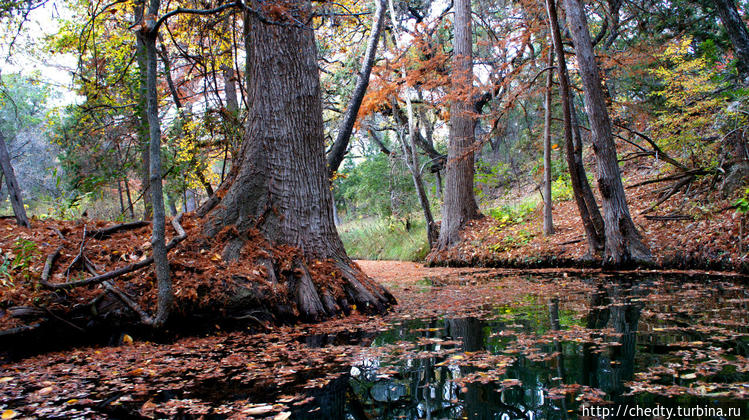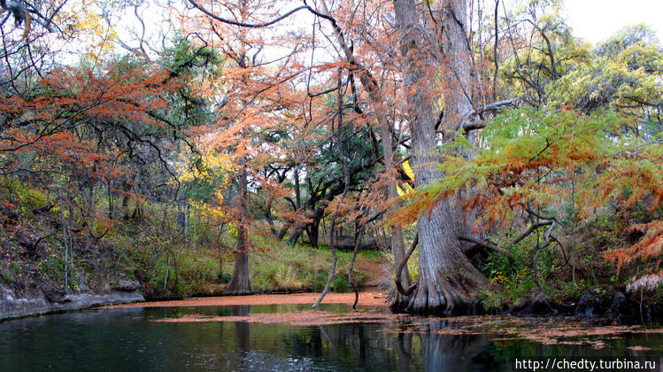 Есть у нас и маленький заповедный кусочек «северной» осени. В глубоком каньоне, в самом центре Техаса, с ледниковых времен сохранилась роща канадских кленов, одна на тысячи километров вокруг. Это конечно охраняемая штатом территория. Наверно единственное место в Техасе куда въезд строго ограничен. В период листопада, в парк пропускают только определенное число машин в день, слишком много желающих. Маленький техасский храм посвященный осени.