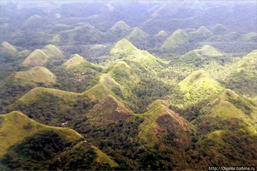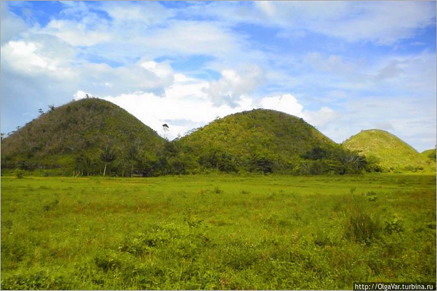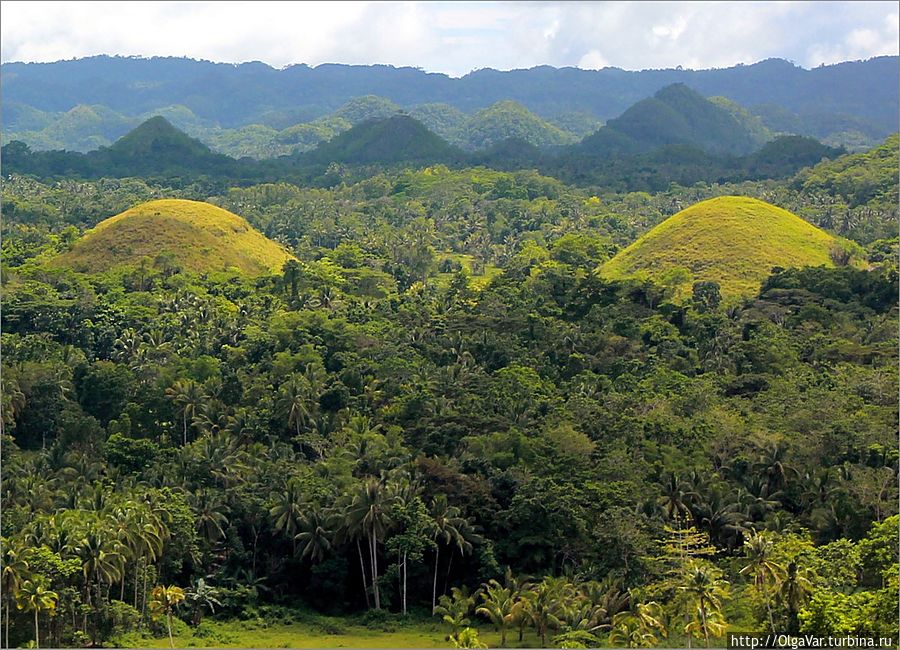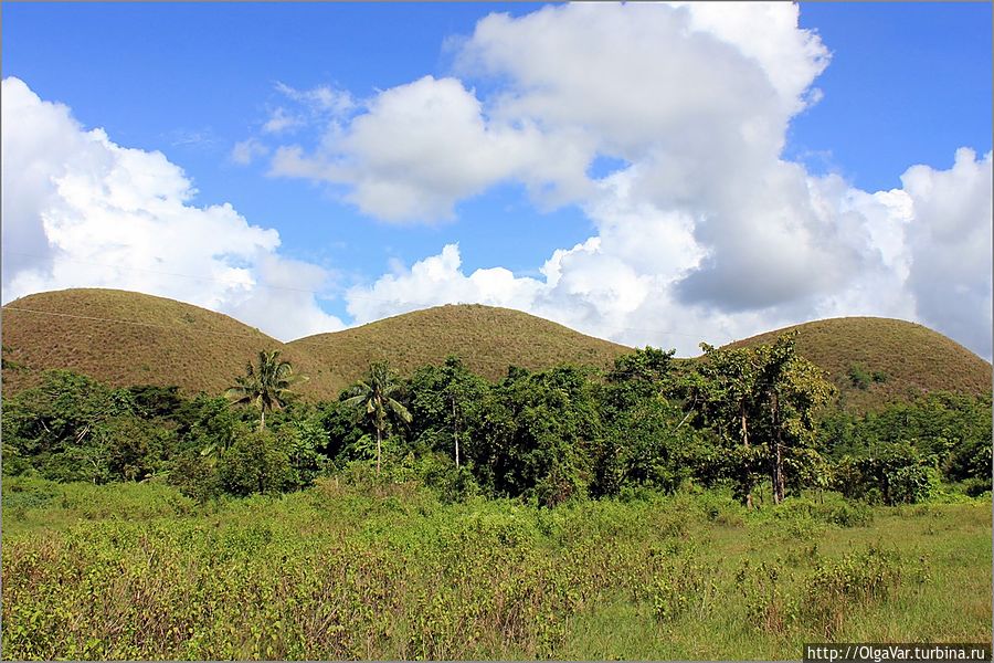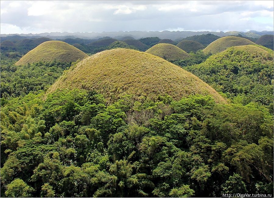Конечно, фотография не может передать всю красоту холмов, покрытых желтоватой травой. В зависимости от времени года трава может менять свой цвет – от зеленого до коричневого, что и делает холмы поразительно похожими на шоколадные «трюфели». Именно это сходство и дало им название – Шоколадные холмы. Впрочем, у каждого они вызывают свои ассоциации…