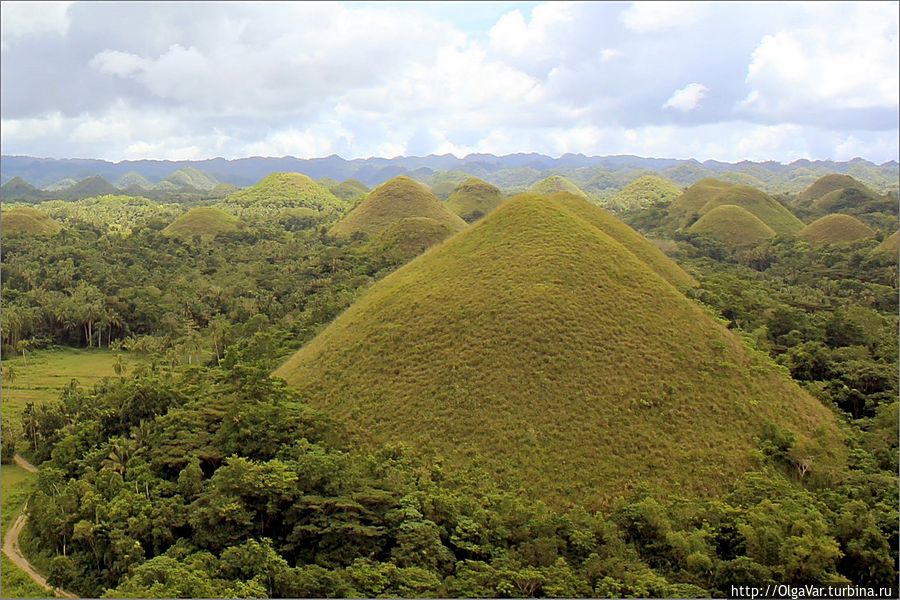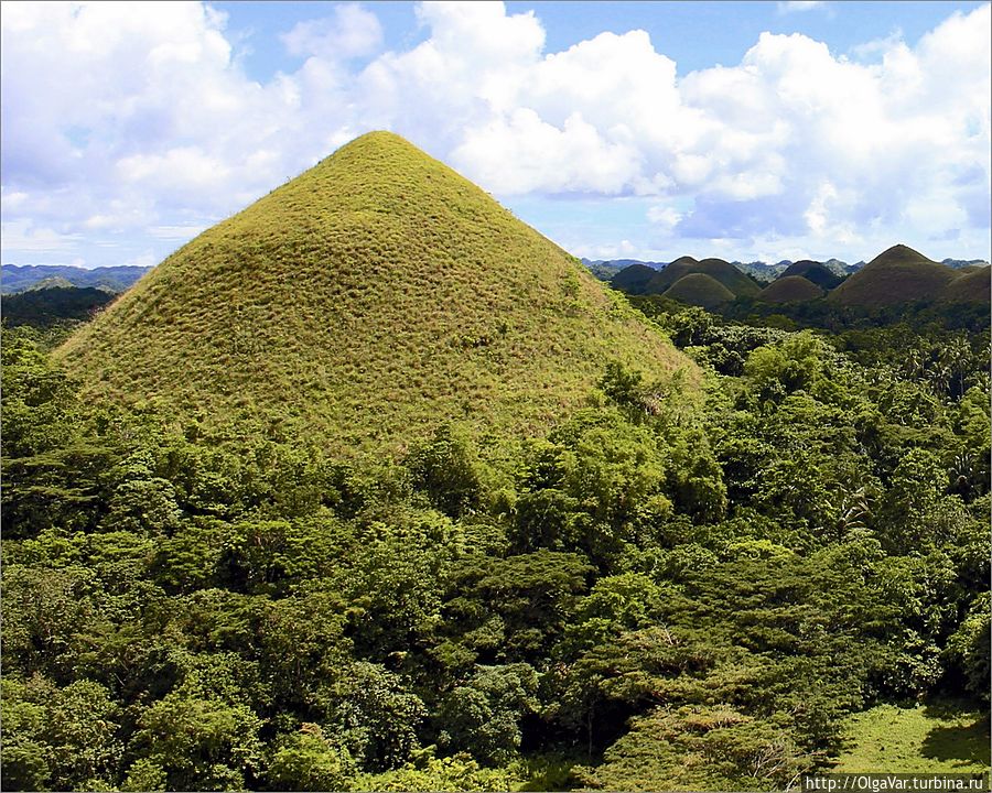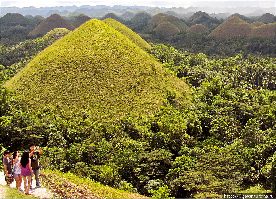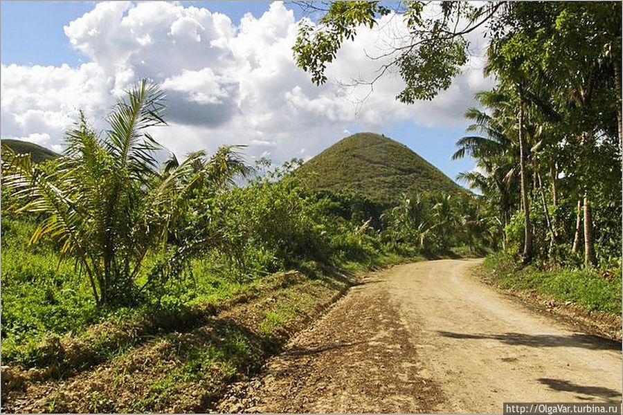 От остановки, где мы вышли, дорога серпантином начинает подниматься вверх, и уже через несколько сот метров перед нами возникают… холмы, ради которых сюда и приезжает немало туристов. Эка невидаль – холмы, скажет кто-то. Что здесь может быть удивительного… А вот может. Вы только представьте себе конфеты «трюфели» конусообразной формы, которые все мы помним из детства. А теперь лишь осталось представить тысячи таких конфет высотой от 30 до 120 метров, разбросанных в центре острова на территории площадью более 50 квадратных километров.