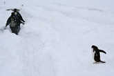Людей они совсем не боятся, более того, по антарктическим правилам человек не должен приближаться к ним ближе чем на 5 метров, пингвины похоже про это знают, но сами охотно нарушают это правило, прыгая буквально по ногам. На суше они боятся только атаки с воздуха (от поморников), в воде посерьезней — от морского леопарда