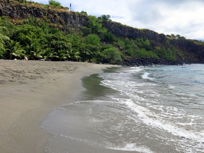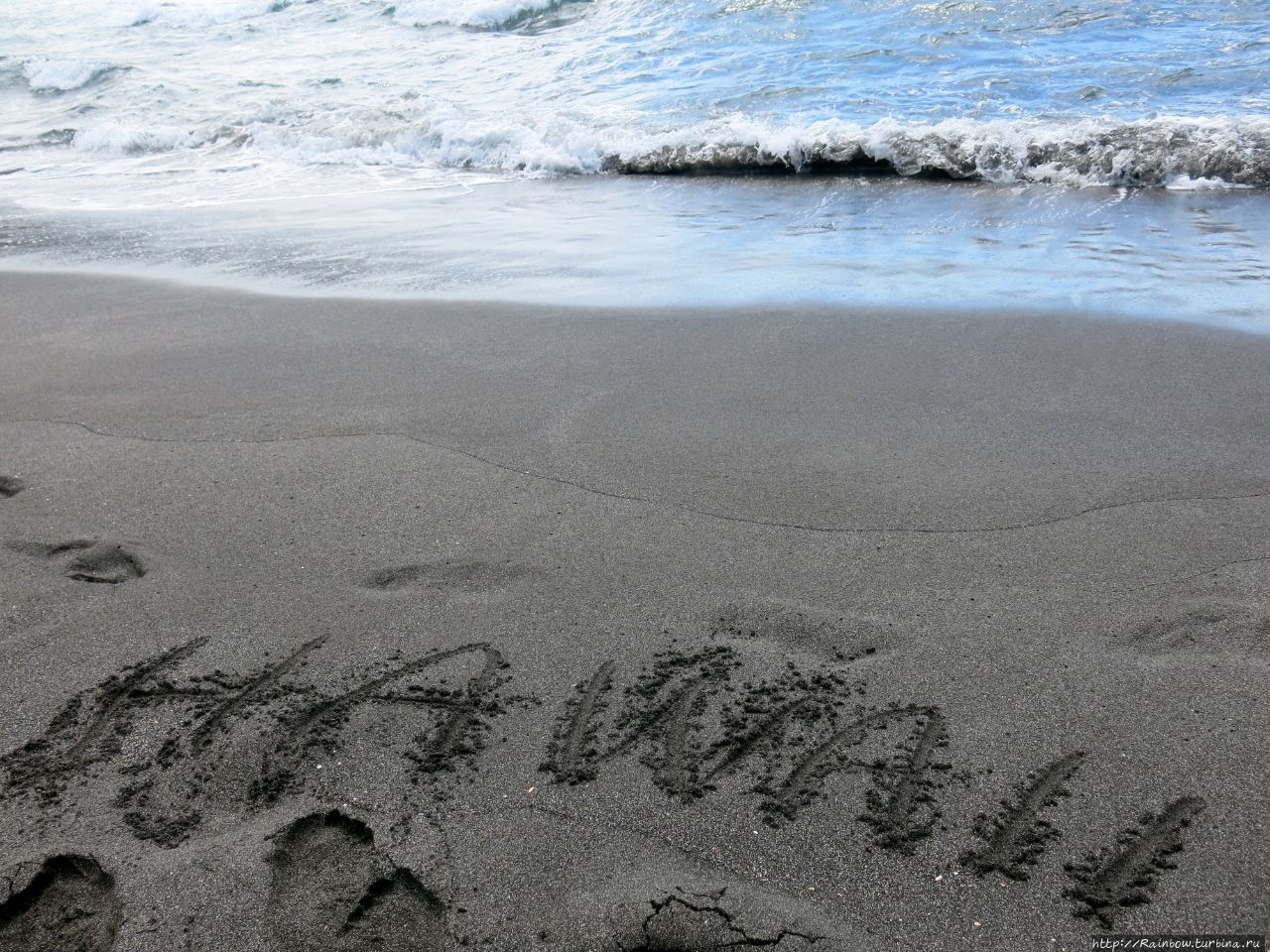 Здесь песок идеального черного цвета. В сочетании с зелеными пальмами и голубым океаном это смотрится потрясающе.