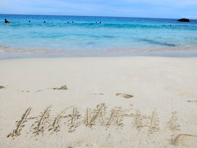 Зачем мы прилетели на Гавайи? Как всегда, причина только одна — это радость. И похоже, что с этим местом мы на одной волне, потому что здесь это написано большими буквами. Мы не просто так в свое время выбрали Гавайи как место для нашей свадьбы. Здесь родилась наша совместная радость к жизни, которая продолжается до сих пор.