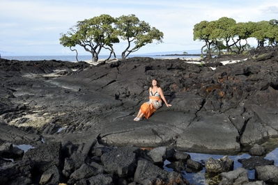 Мне понравилось гулять по застывшей лаве. Это большая черная пемза, омытая океаном и почти мягкая, теплая и очень экзотичная. Уж на что я большой любитель воды и купания, и то провела здесь большое количество времени с удовольствием.