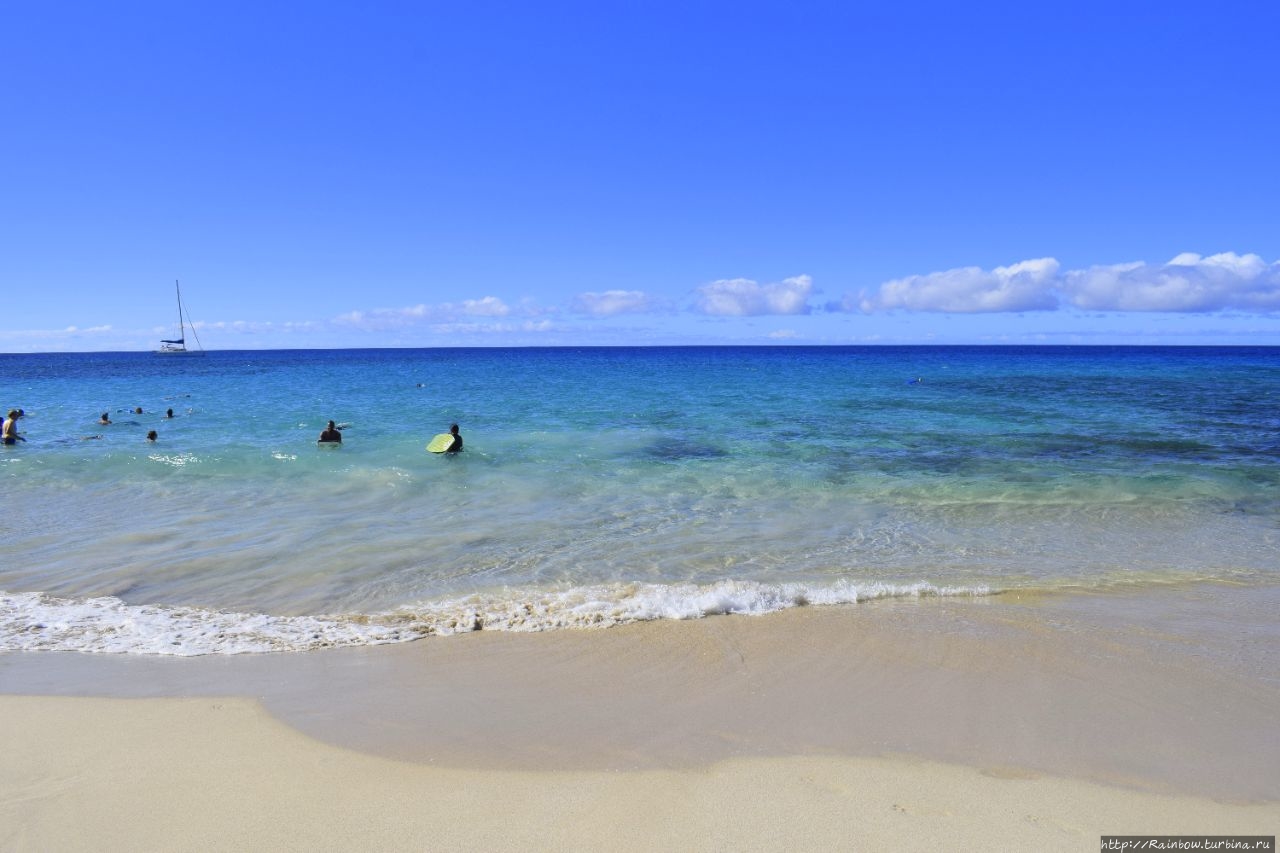 Это был великолепный, пожалуй, самый безупречный, длинный, широкий пляж с нежным песком, без скал и камней, с нежным прибоем. Это был настоящий тихоокеанский рай.