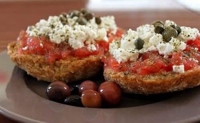 Хлеб на Крите называют «паксимадья» и известен он чуть ли не со времен царя Миноса. Любопытно, что пекут его дважды: первый раз, как обыкновенную, ячменную булочку, а после выпекания разрезают — и пекут второй раз, специально подсушивая его. Получается ячменный сухарь из двух половинок. Именно в таком виде он считается готовым. Островитяне связывают такой способ приготовления с изобретательностью крестьян. Так как почти вся поверхность острова занята горами, а путь из одной горной деревни в другую мог занимать целую вечность, сухари были простой, полезной и легкой едой. Непосредственно перед едой паксимадью размягчают, смачивая водой или оливковым маслом и уже на его основе готовят одно из самых известных критских блюд — «дакос» что-то среднее между итальянской брускеттой и чизбургером. Настоящий «дакос», своим внешним видом напоминает глаза совы. Именно поэтому его часто называют «кукувАйья», что в переводе означает «сова». В некоторых регионах Крита его еще называют «кулукопсомо», т.е. «хлеб для щенка» так как размочен он должен быть настолько, чтобы его смог съесть даже щенок. Сверху на дакос укладывают натертые на терке сочные летние томаты, оливки, соленый овечий сыр (мизифра) и ароматный базилик или свежий орегано.