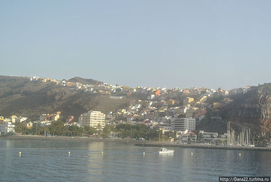 Прямо напротив нашего пляжа Фаньябе манил обманчивой близостью своих берегов еще один остров Канарского архипелага — Ла Гомера (расстояние между островами — около 30 км). И, конечно же, он немедленно был включен в наш экскурсионный маршрут. Добраться до острова можно на скоростном пароме, один из которых (на нем мы и путешествовали) является самым быстрым в своем классе (Fred Olsen Express) — тоже достопримечательность в своем роде. А по пути к острову нам встретились киты!!!