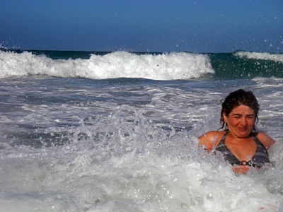 После моих испытаний волн, супруга тоже предприняла попытку искупаться...