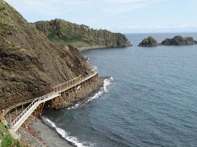 Сразу за часовенкой начинается деревянная тропа к айнскому святилищу.