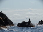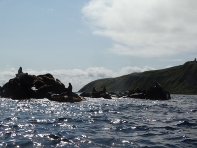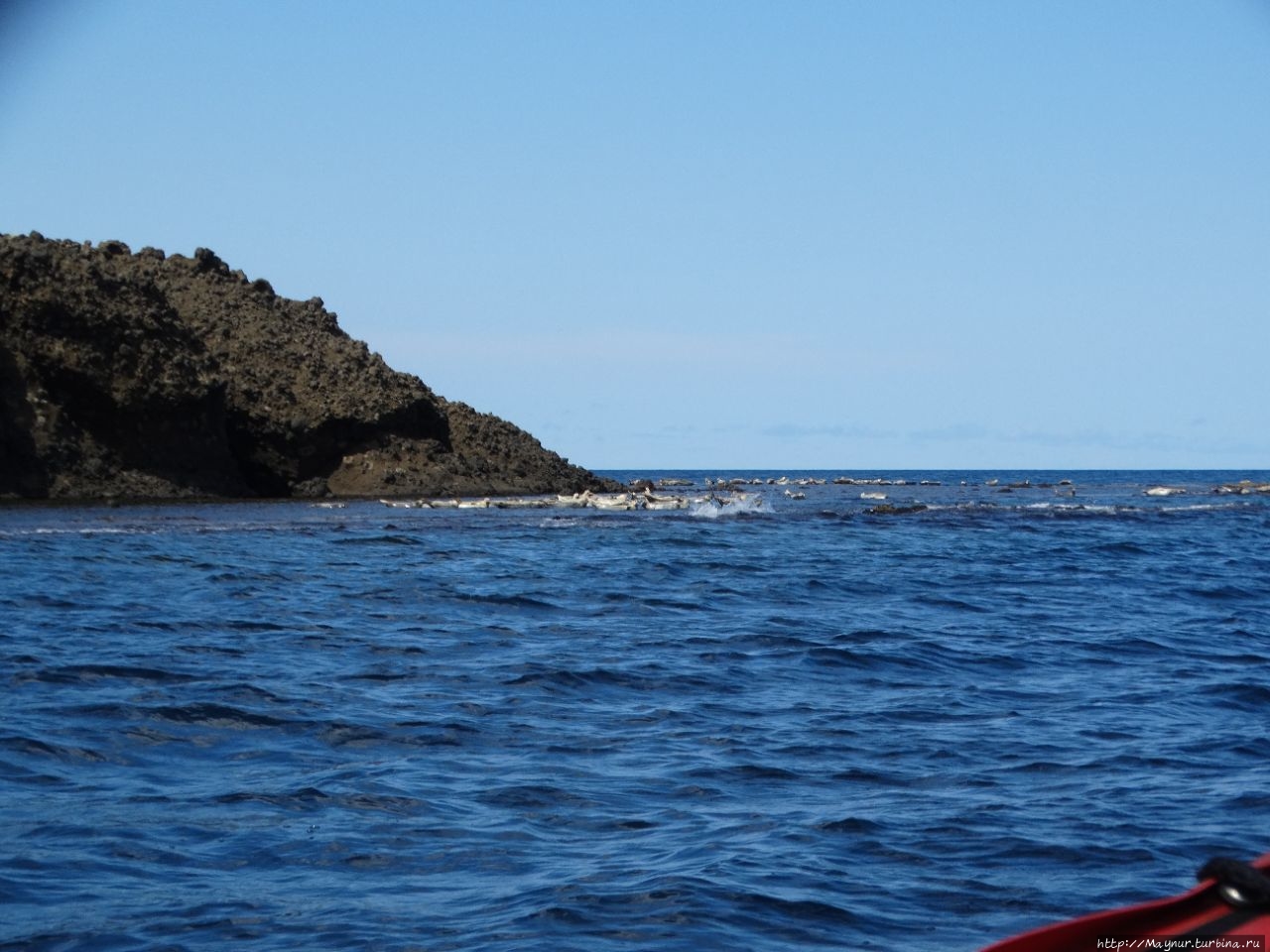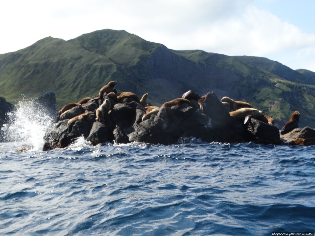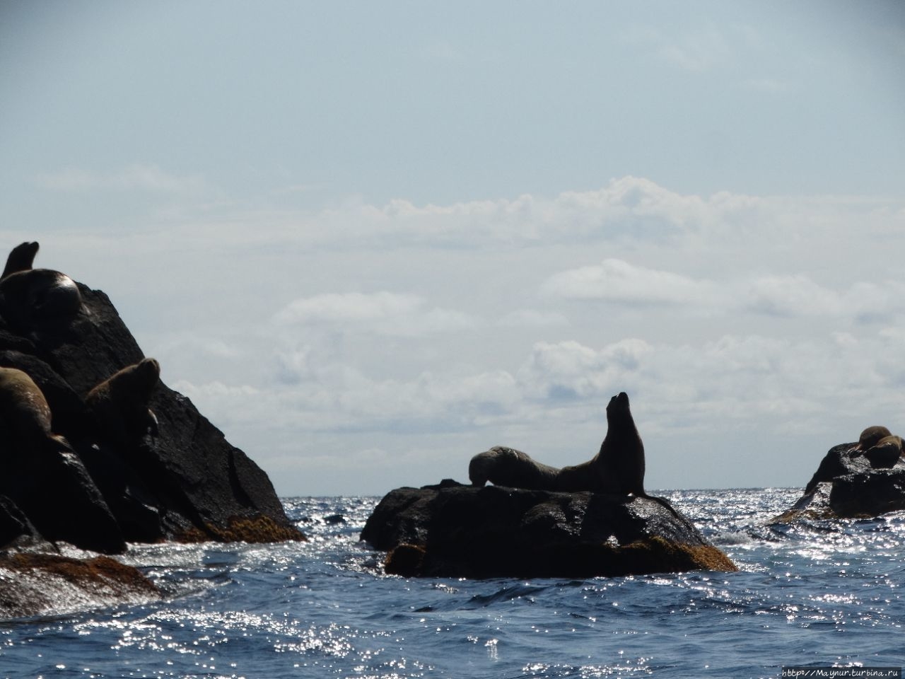 При приближении стали видны еще две небольших скалы с силуэтами сивучей, которые при нашем приближении начали издавать мощные угрожающие рыки. ..Камни, волны, сивучи. В этом зрелище чувствуется мощь дикой природы, ее необузданность и наше бессилие перед ней.