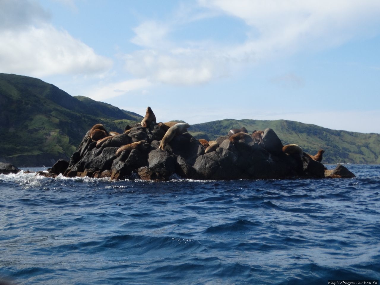 К сожалению эти снимки у меня не получились, но я это видела!Затем лодка вынесла нас к южной оконечности острова, место, где на мелководье загорало огромное количество нерп. При нашем приближении они даже не удосужились покинуть место лежки и с любопытством поглядывали на нас.
