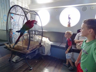 вращаться. На кораблик мы тоже не опоздали, как ни странно :). И во время пути обратно на Кос дети подружились с попугаем. Другие пассажиры даже удивлялись тому, как Артемий и Дмитрий нашли с птицей общий язык :)