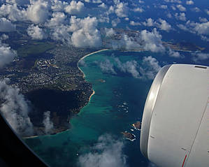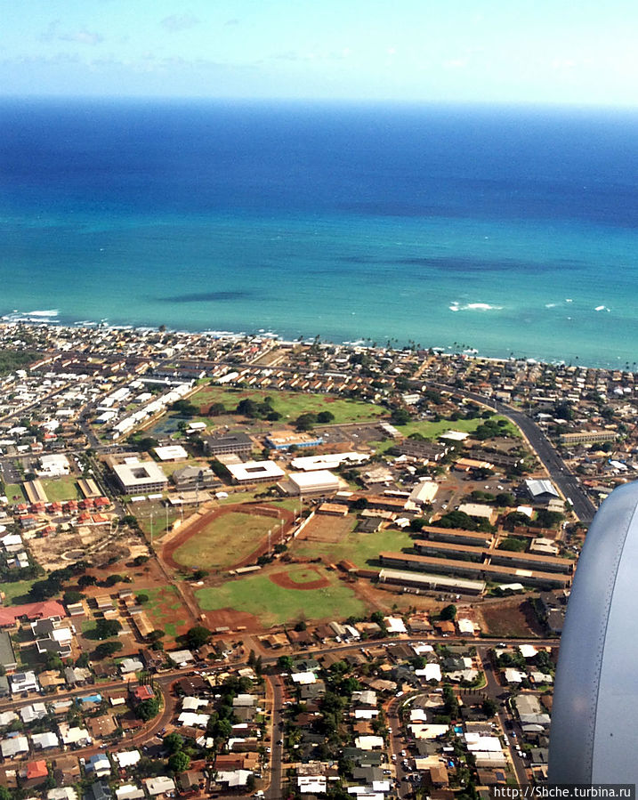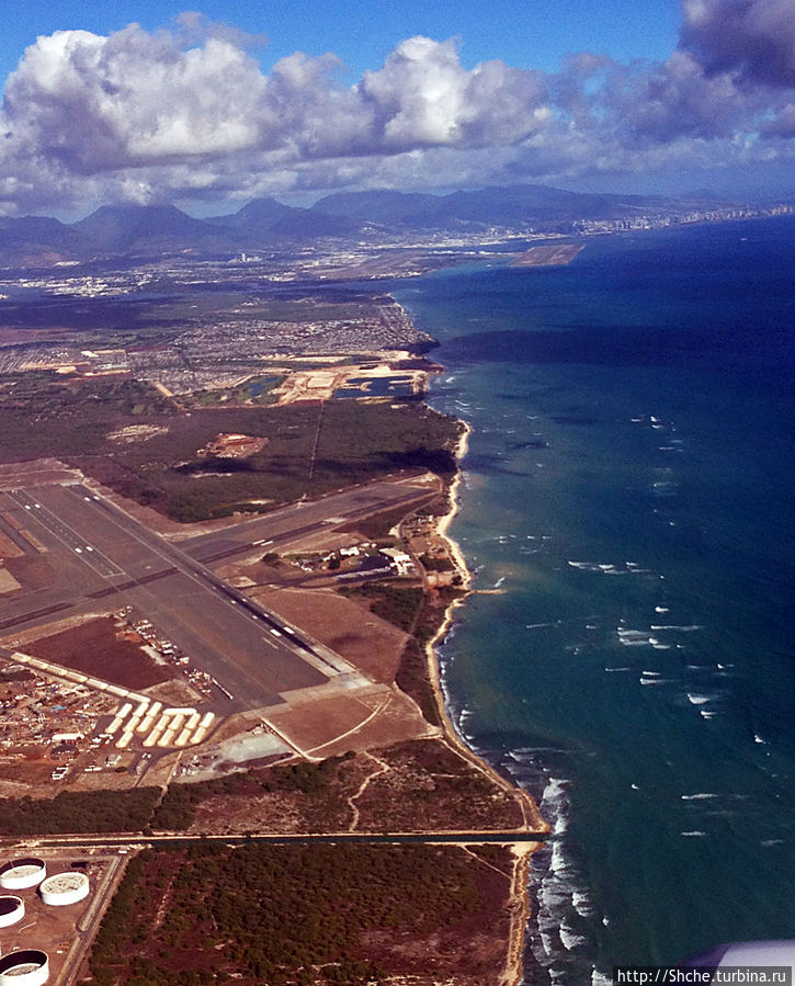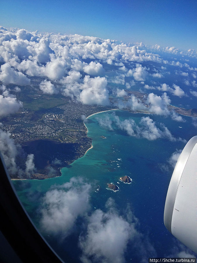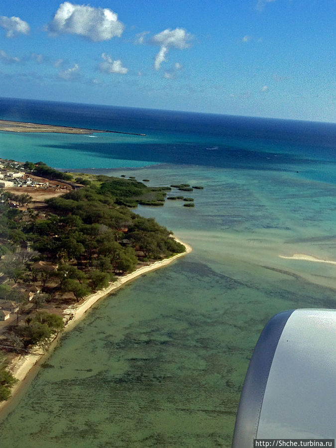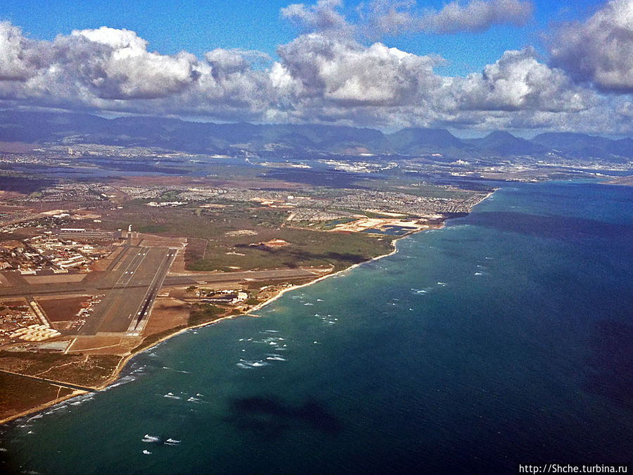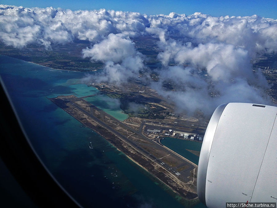 Наше большое путешествие по Гавайям все же логично начать с прибытия на остров Оаху в аэропорт Гонолулу. Все же я первый раз увидал Гавайи в иллюминатор самолета Нью-Йорк — Гонолулу.