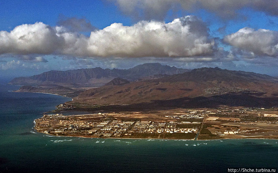 Но вот "прилетели — сразу сели" тут не наш случай. Пилот видимо знал, что на этом острове мы облет на вертолетах тне планировали, потому прокатил нас вдоль Вийкики, мимо Перл-Харбора на западную оконечность острова, там развернулся и уж тогда,- "Гонолулу, привет. Сказка начинается!"