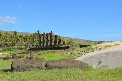 Важно и то, что не существует никакого контроля доступа сюда, или времени посещения, потому что этот археологический район расположен на пляже Anakena, который является местом общественного пользования. При этом все же следует помнить, что местные жители и гости могут свободно передвигаться, но только уважая правила национального парка. Жаль, что пляж находится достаточно далеко от Ханга Роа (18 км, пешком не дойти), и сюда не просто добраться! Можно взять за 30 долларов такси, предварительно договорившись, когда вас нужно будет забрать. Это нужно сделать потому, что здесь нет покрытия телефонной сети, и дозвониться до водителя будет нереально. Однако жизнь не стоит на месте, и вскоре были организованы автобусы-шатлы, которые обойдутся вам дешевле, в 12 долларов туда-обратно. Ну и велосипед тоже является одним из транспортных средств на острове, используя его, вы доберетесь до пляжа за 2,5 часа по длинной береговой дороге, или за 1,5 по прямой.