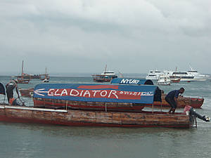 У причала Стоун-Тауна экскурсантов ждали лодки с громкими названиями на брезентовых