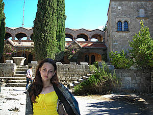 К монастырю тоже ведет живописная дорожка, утопающая в зелени кипарисов. Вокруг гуляют множество павлинов, сидят даже на деревьях и в окнах монастыря. Сам монастырь разделен на две части — православную (действующую ныне) и католическую. В храме хранится копия чудотворной иконы (сам оригинал — в Петербурге) Богородицы, собственно с которой и началась история этого места. Ее написал апостол Лука, а принес на гору монах Филерим — его именем и названа гора.Кроме иконы в храме можно увидеть красивые фрески. А неподалёку есть магазинчик, где продают особенный ликёр, в основе которого лежит древний рецепт, изобретенный монахами-капуцинами. Говорят, ликёр настаивается на травах, исключительно со склонов горы Филеримос.