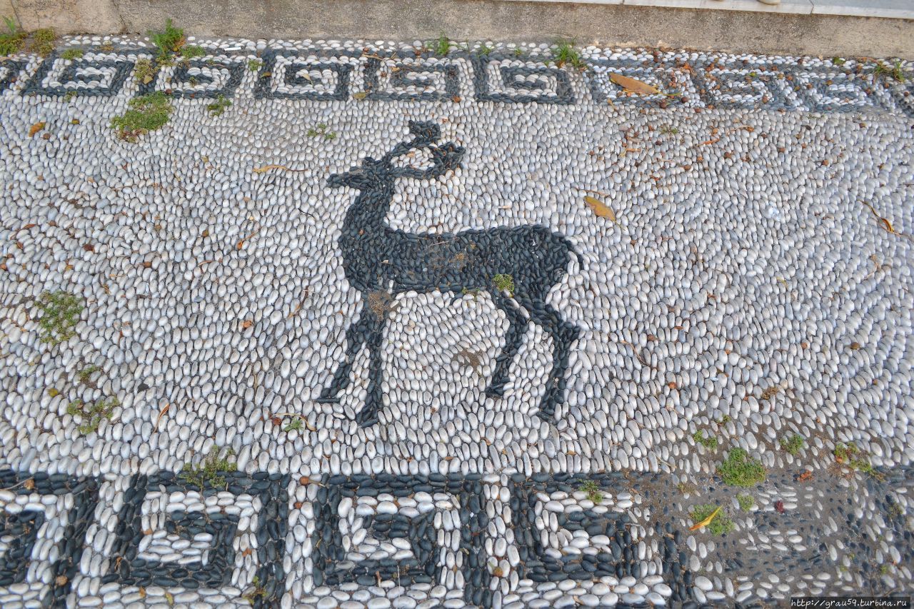 Любимое мозаичное галечное покрытие на острове с оленями было как на мостовой, так и на клумбах.Вот такое оленье изобилие можно увидеть на острове Родос.