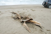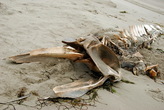 Но пока едем по сырому песку. Недалеко от съезда с дороги встречаем скелет кита. Экзотика. Останавливаемся. Большой и жалко его. Ведь он плавал когда-то, но что-то пошло не так.