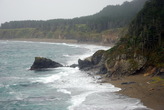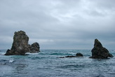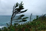 Преодолеваем лужищу, фотографирую красивые отражения и, наконец, минут через 10 выезжаем к морю. Вот оно, красота! Дождь почти закончился, слегка моросит. Но солнца нет.