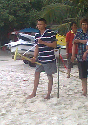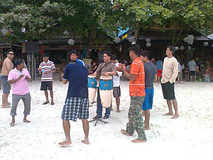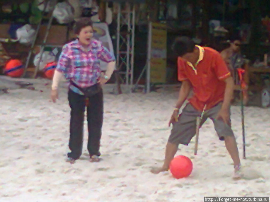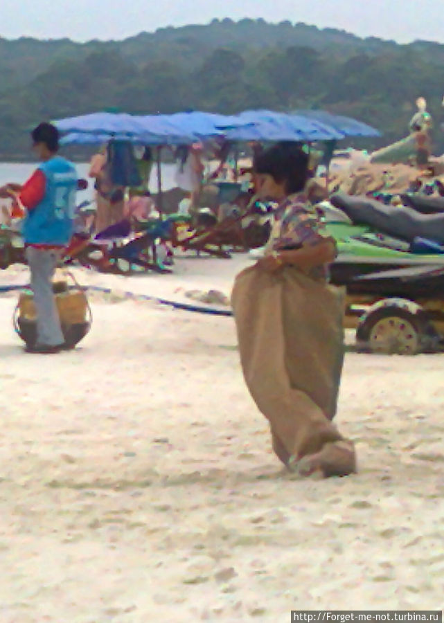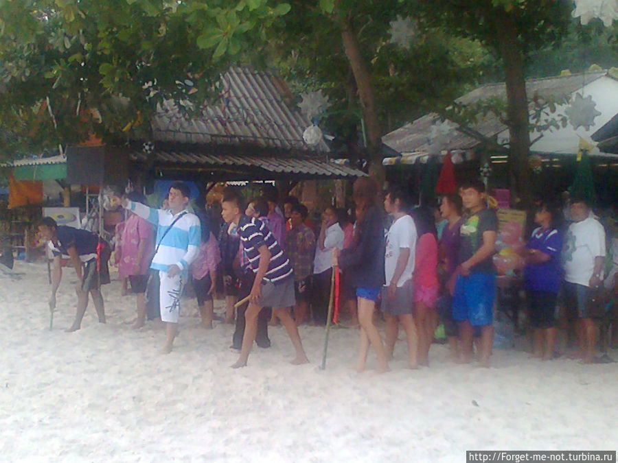 Утром рядом с кафе, где мы завтракали, раздался бой барабана и заставил нас побыстрее двинуться на пляж. Катер высадил на берег человек 40 разного возраста тайцев. Они быстренько покидали вещи в номера и вернулись на песок – развлекаться. Основное развлечение – эстафеты.