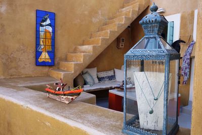 Захотелось расправить крылья, покружить над этим миром, насладиться красотой, теплотой, какой-то необыкновенной притягательностью этих мест. Удивительно, как темные, отвесные, совсем без растительности и, кажется, обитателей, утесы могут казаться теплыми и привлекательными. Да, из крупных животных здесь, пожалуй, только ослики обитают. Но они хозяйские, вносят свой вклад в пополнение бюджета семьи, катая приезжих. Собаки и кошки тоже домашние. А свободных ящерок и букашек и не разглядишь в камнях. Основная «животная жизнь» островитян происходит под водой.