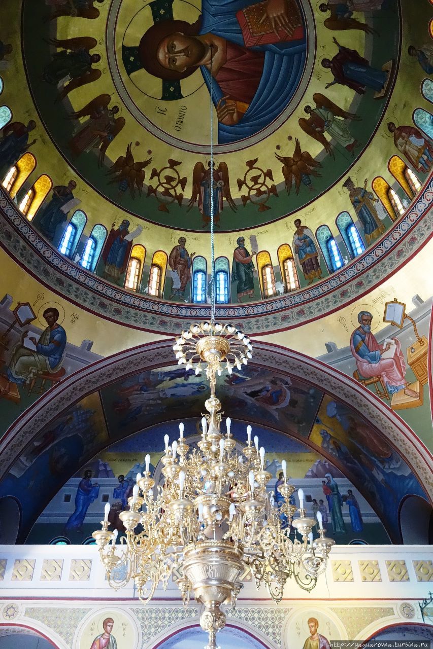 Мы ещё к погружениям не готовы, поэтому путешествуем по острову на автомобиле. А пока у нас есть возможность зайти в кафедральный собор. Особо старинным его не назовешь, построен он в 1827 году, а в 1956 его пришлось восстанавливать после землетрясения. Еще через 20 лет на его внешнем фасаде появилась мозаика. Изнутри собор украшают фрески, которые создал местный житель Христофор Ассимис..
