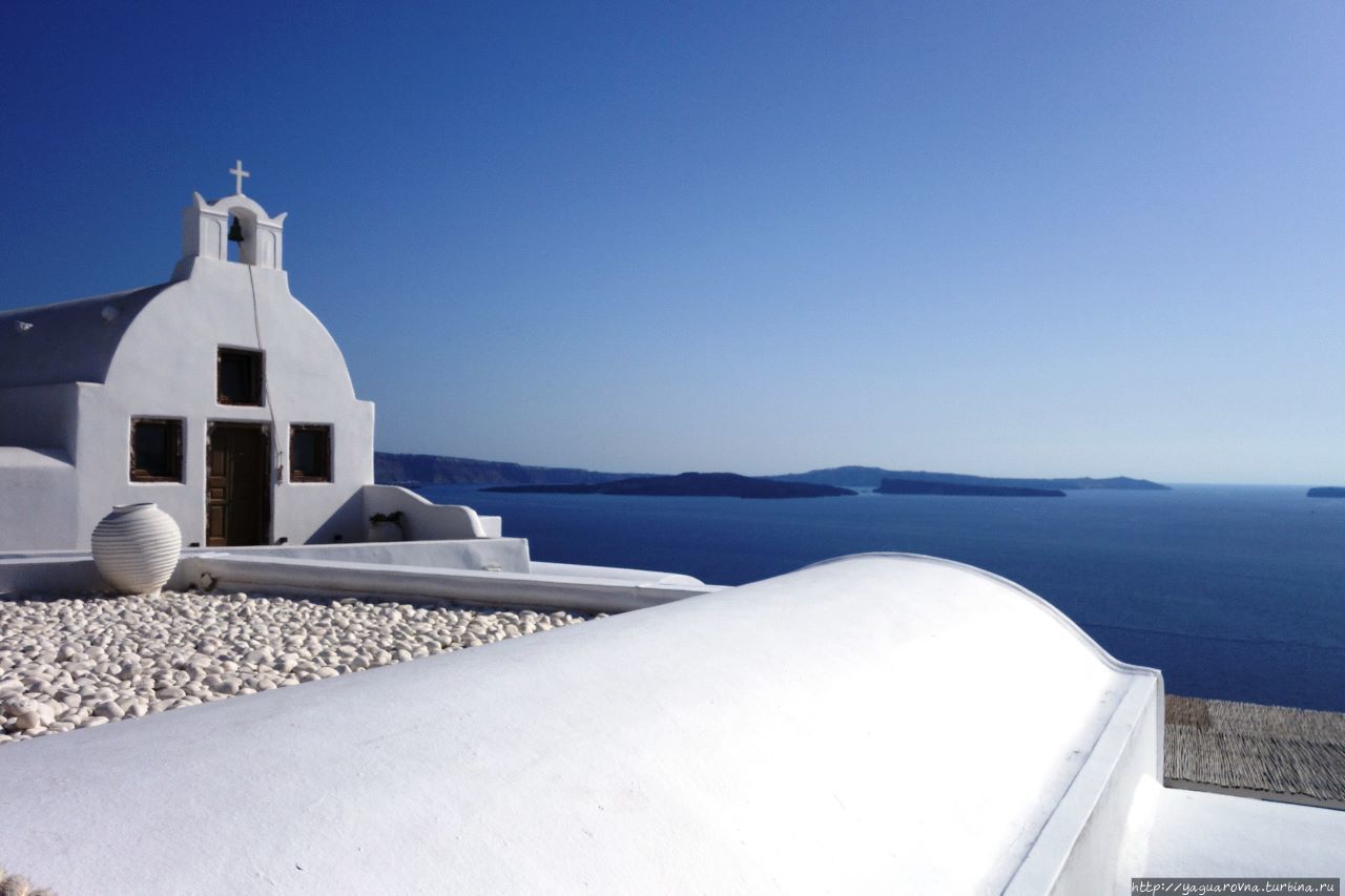 Вы уже видели мои фотографии Санторини, а может быть и сами гуляли по этому острову. То есть имеете представление о его размерах и постройках. Так вот, здесь при том, что выделить как отдельный город можно лишь 3 поселения, церквей и храмов – аж 350! Еще несколько монастырей, часовен и колоколен. Наука история утверждает, что на Санторини возведением храмов занимались моряки, которым удалось спастись после какого-либо морского бедствия. Вот в благодарность и покровительство возводили они своим святым изумительной красоты храмы.